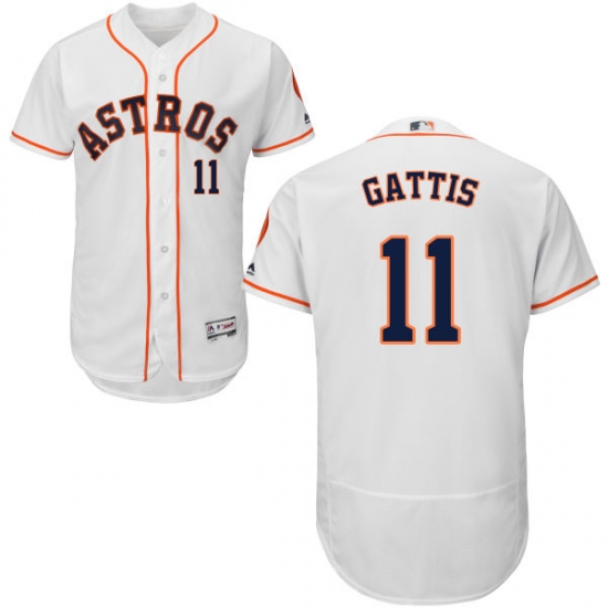 Home>MLB>Houston Astros>Evan Gattis>Men's Majestic Houston Astros #11 Evan Gattis White Home Flex Base Authentic Collection MLB Jersey
