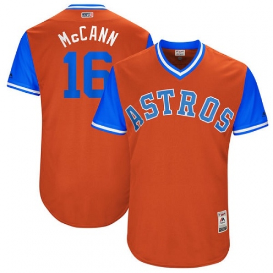 Home>MLB>Houston Astros>Brian McCann>Men's Majestic Houston Astros #16 Brian McCann "McCann" Authentic Orange 2017 Players Weekend MLB Jersey