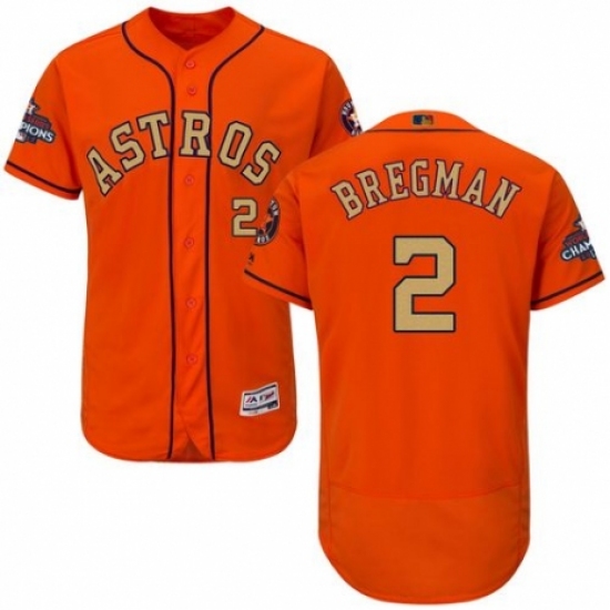 >Men's Majestic Houston Astros #2 Alex Bregman Orange Alternate 2018 Gold Program Flex Base Authentic Collection MLB Jersey