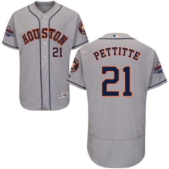Home>MLB>Houston Astros>Andy Pettitte>Men's Majestic Houston Astros #21 Andy Pettitte Authentic Grey Road 2017 World Series Champions Flex Base MLB Jersey
