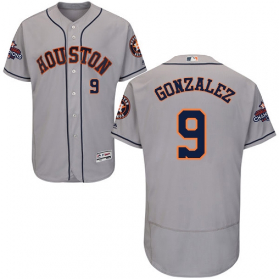 Home>MLB>Houston Astros>Marwin Gonzalez>Men's Majestic Houston Astros #9 Marwin Gonzalez Authentic Grey Road 2017 World Series Champions Flex Base MLB Jersey