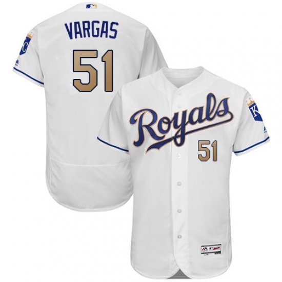 Home>MLB>Kansas City Royals>Jason Vargas>Men's Majestic Kansas City Royals #51 Jason Vargas White Flexbase Authentic Collection MLB Jersey