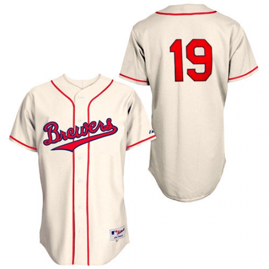 Home>MLB>Milwaukee Brewers>Robin Yount>Men's Majestic Milwaukee Brewers #19 Robin Yount Replica Cream 1948 Turn Back The Clock MLB Jersey