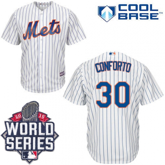 Men's Majestic New York Mets #30 Michael Conforto Replica White Home Cool Base 2015 World Series MLB Jersey