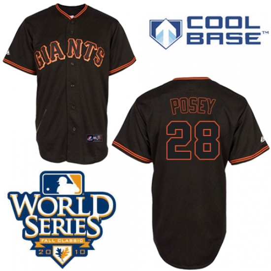 Home>MLB>San Francisco Giants>Buster Posey>Men's Majestic San Francisco Giants #28 Buster Posey Authentic Black Cool Base 2010 World Series Patch MLB Jersey