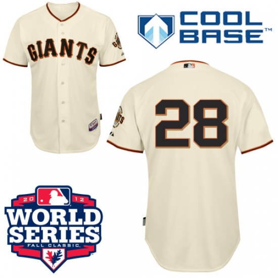 Men's Majestic San Francisco Giants #28 Buster Posey Replica Cream Cool Base 2012 World Series Patch MLB Jersey
