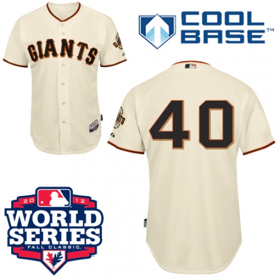 Men's Majestic San Francisco Giants #40 Madison Bumgarner Authentic Cream Cool Base 2012 World Series Patch MLB Jersey
