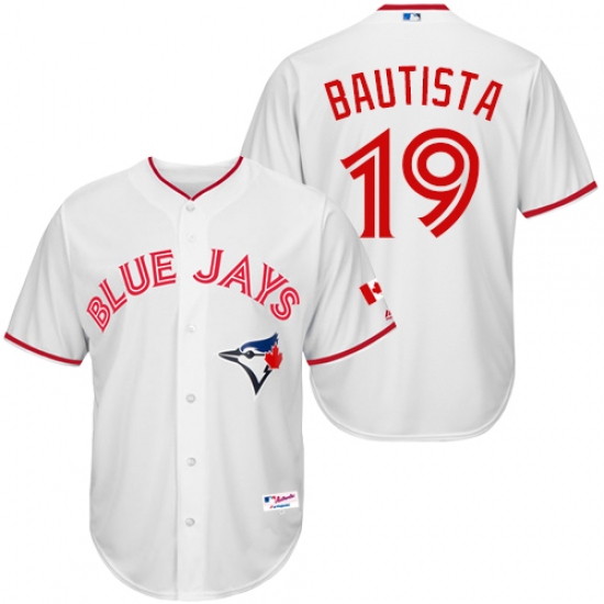Home>MLB>Toronto Blue Jays>Jose Bautista>Men's Majestic Toronto Blue Jays #19 Jose Bautista Authentic White 2015 Canada Day MLB Jersey