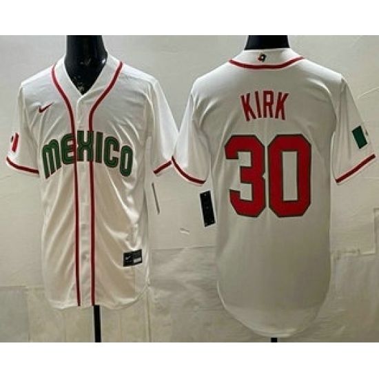 >Men's Mexico #30 Alejandro Kirk White 2026 World Baseball Classic Cool Base Jersey