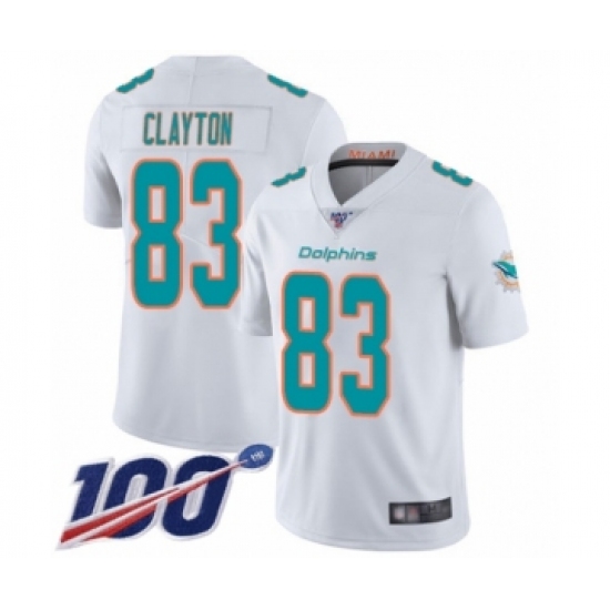 Men's Miami Dolphins #83 Mark Clayton White Vapor Untouchable Limited Player 100th Season Football Jersey