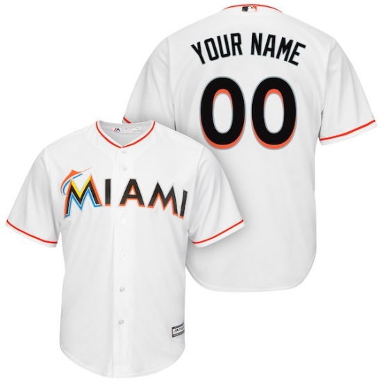 >Men's Miami Marlins Majestic White Cool Base Custom Jersey