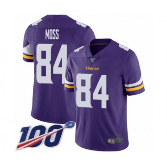 Men's Minnesota Vikings #84 Randy Moss Purple Team Color Vapor Untouchable Limited Player 100th Season Football Jersey