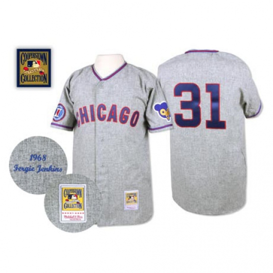 Men's Mitchell and Ness 1968 Chicago Cubs #31 Fergie Jenkins Authentic Grey Throwback MLB Jersey