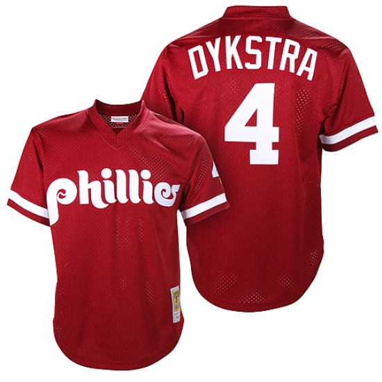 Men's Mitchell and Ness 1991 Philadelphia Phillies #4 Lenny Dykstra Replica Red Throwback MLB Jersey