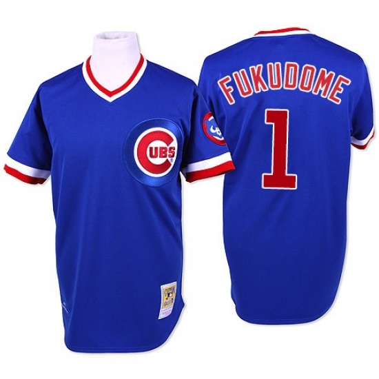 Men's Mitchell and Ness Chicago Cubs #1 Kosuke Fukudome Authentic Blue Throwback MLB Jersey