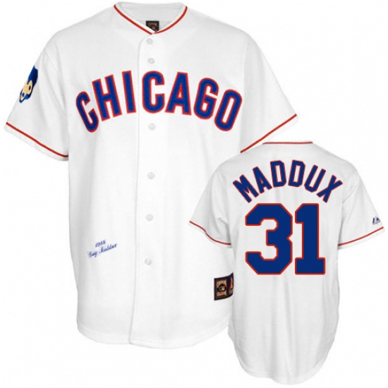 Home>MLB>Chicago Cubs>Greg Maddux>Men's Mitchell and Ness Chicago Cubs #31 Greg Maddux Authentic White 1988 Throwback MLB Jersey