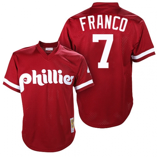 Men's Mitchell and Ness Philadelphia Phillies #7 Maikel Franco Replica Red Throwback MLB Jersey