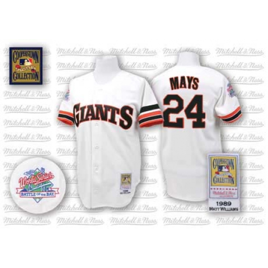 Men's Mitchell and Ness San Francisco Giants #24 Willie Mays Authentic White Throwback MLB Jersey