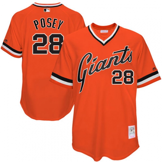 Men's Mitchell and Ness San Francisco Giants #28 Buster Posey Authentic Orange Throwback MLB Jersey