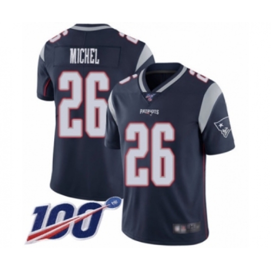 Men's New England Patriots #26 Sony Michel Navy Blue Team Color Vapor Untouchable Limited Player 100th Season Football Jersey