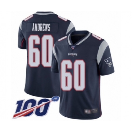 Men's New England Patriots #60 David Andrews Navy Blue Team Color Vapor Untouchable Limited Player 100th Season Football Jersey