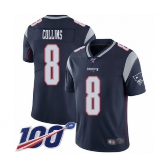 >Men's New England Patriots #8 Jamie Collins Navy Blue Team Color Vapor Untouchable Limited Player 100th Season Football Jersey