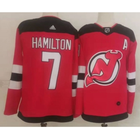 >Men's New Jersey Devils #7 Dougie Hamilton Red Authentic Jersey