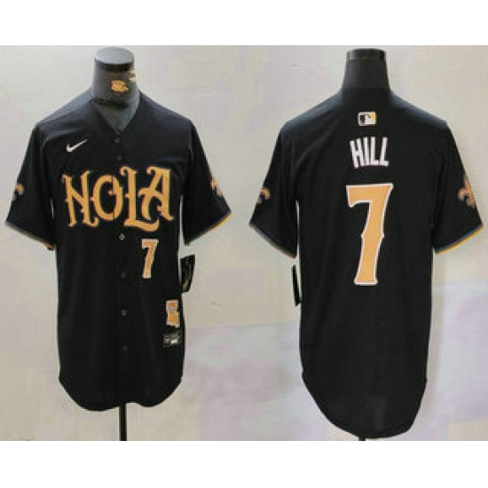 Men's New Orleans Saints #7 Taysom Hill Number Black Nola Baseball Jersey