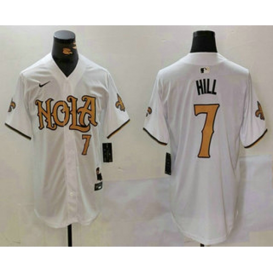 >Men's New Orleans Saints #7 Taysom Hill Number White Nola Baseball Jersey