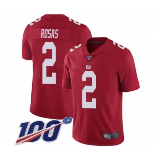 Men's New York Giants #2 Aldrick Rosas Red Limited Red Inverted Legend 100th Season Football Jersey