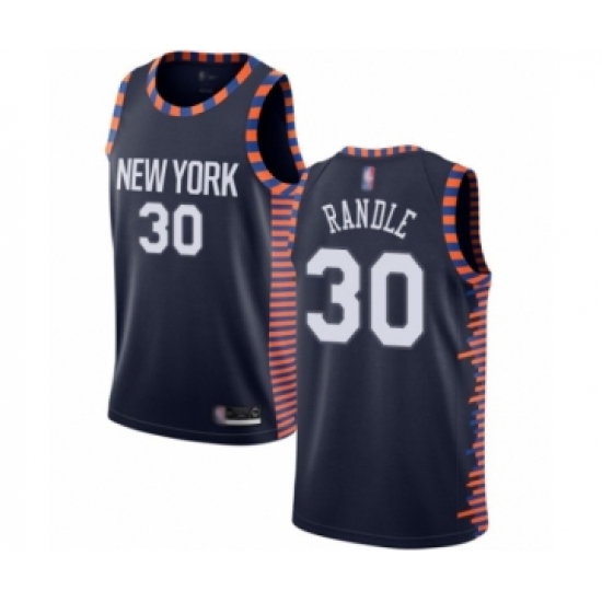 >Men's New York Knicks #30 Julius Randle Authentic Navy Blue Basketball Jersey - 2018 19 City Edition