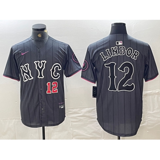Men's New York Mets #12 Francisco Lindor Black Alternate Limited Stitched Baseball Jersey