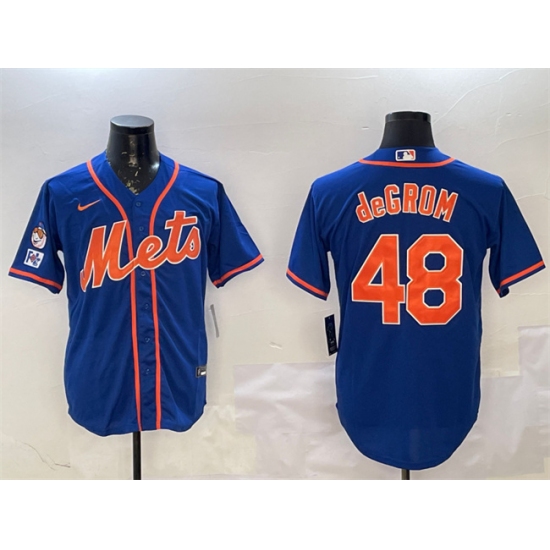 >Men's New York Mets #48 Jacob DeGrom Royal 2025 Spring Training Cool Base Stitched Baseball Jersey