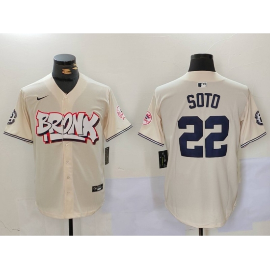 Men's New York Yankees #22 Juan Soto Cream Limited Stitched Baseball Jersey