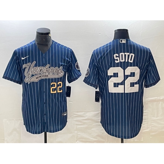 Men's New York Yankees #22 Juan Soto Number Blue Pinstripe Cool Base Stitched Baseball Jersey