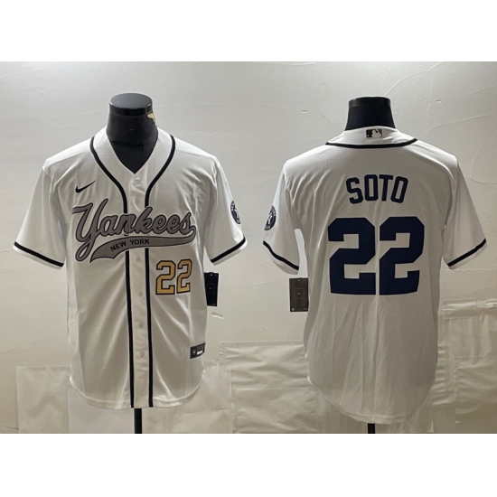 Men's New York Yankees #22 Juan Soto Number White Cool Base Stitched Baseball Jersey