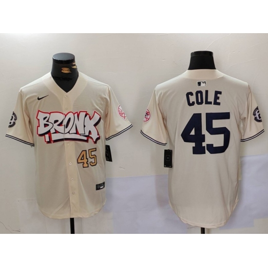 >Men's New York Yankees #45 Gerrit Cole Cream Limited Stitched Baseball Jerseys