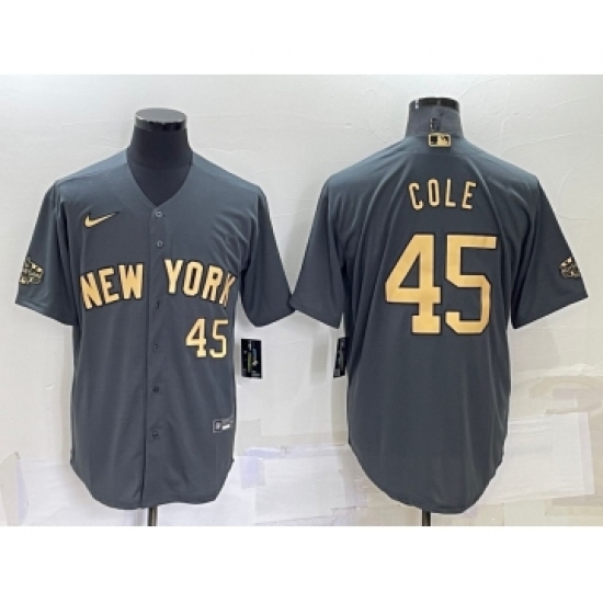 Men's New York Yankees #45 Gerrit Cole Number Grey 2022 All Star Stitched Cool Base Nike Jersey
