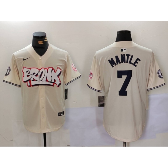 Men's New York Yankees #7 Mickey Mantle Cream Limited Stitched Baseball Jersey