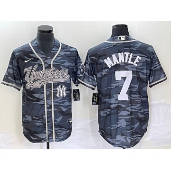 Men's New York Yankees #7 Mickey Mantle Grey Camo Cool Base Stitched Baseball Jersey1