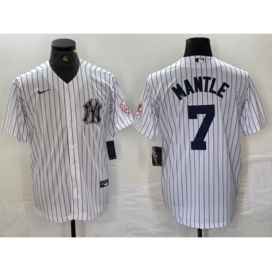 Men's New York Yankees #7 Mickey Mantle Navy Pinstripe Fashion Cool Base Jersey