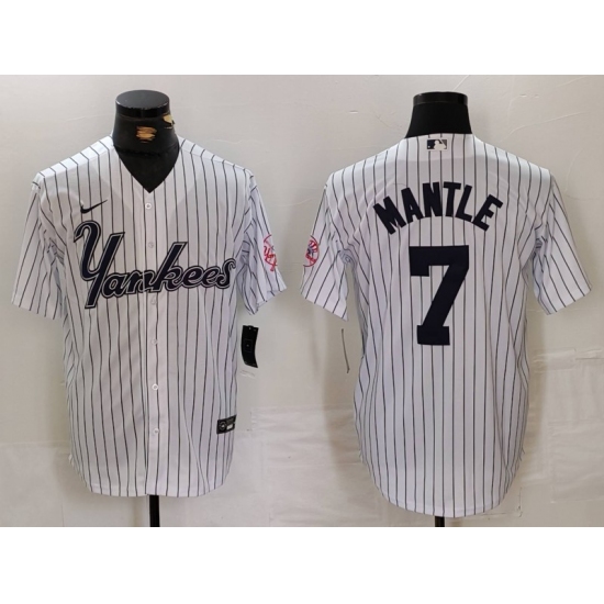Men's New York Yankees #7 Mickey Mantle White Pinstripe Fashion Cool Base Jerseys