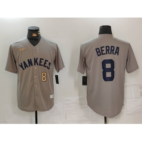 Men's New York Yankees #8 Yogi Berra Grey Throwback Stitched Cool Base Nike Jerseys