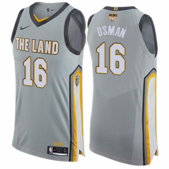 Men's Nike Cleveland Cavaliers #16 Cedi Osman Authentic Gray 2018 NBA Finals Bound NBA Jersey - City Edition