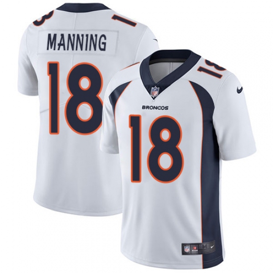 Home>NFL>Denver Broncos>Peyton Manning>Men's Nike Denver Broncos #18 Peyton Manning White Vapor Untouchable Limited Player NFL Jersey