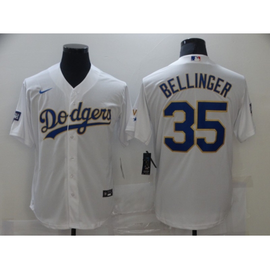 Men's Los Angeles Dodgers #35 Cody Bellinger White 2020 World Series Replica Jersey