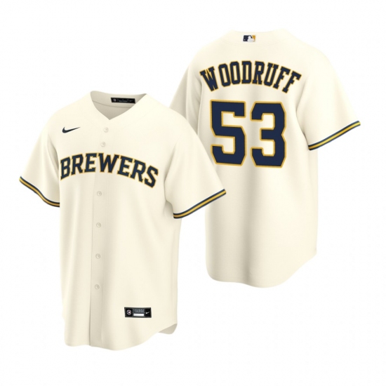 Men's Nike Milwaukee Brewers #53 Brandon Woodruff Cream Home Stitched Baseball Jersey