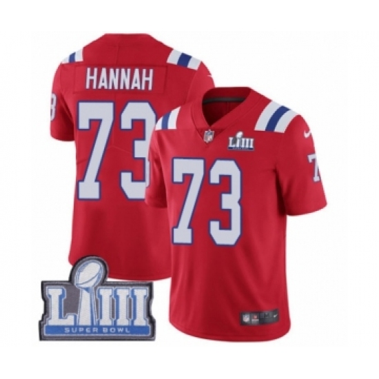 >Men's Nike New England Patriots #73 John Hannah Red Alternate Vapor Untouchable Limited Player Super Bowl LIII Bound NFL Jersey