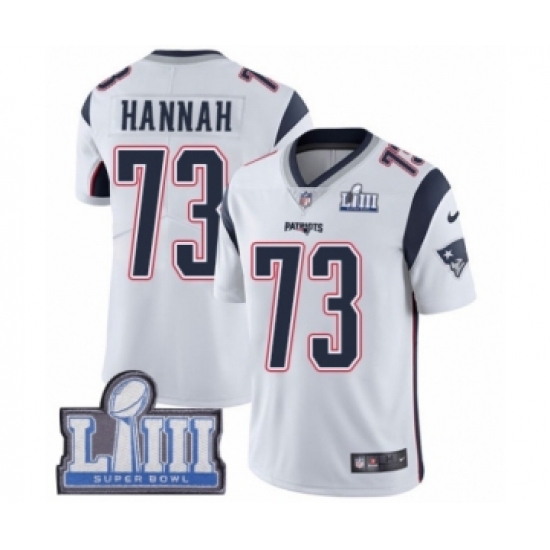 Men's Nike New England Patriots #73 John Hannah White Vapor Untouchable Limited Player Super Bowl LIII Bound NFL Jersey