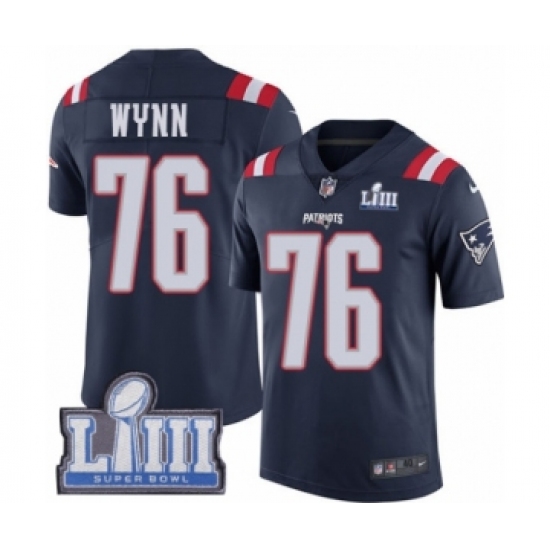 Men's Nike New England Patriots #76 Isaiah Wynn Limited Navy Blue Rush Vapor Untouchable Super Bowl LIII Bound NFL Jersey